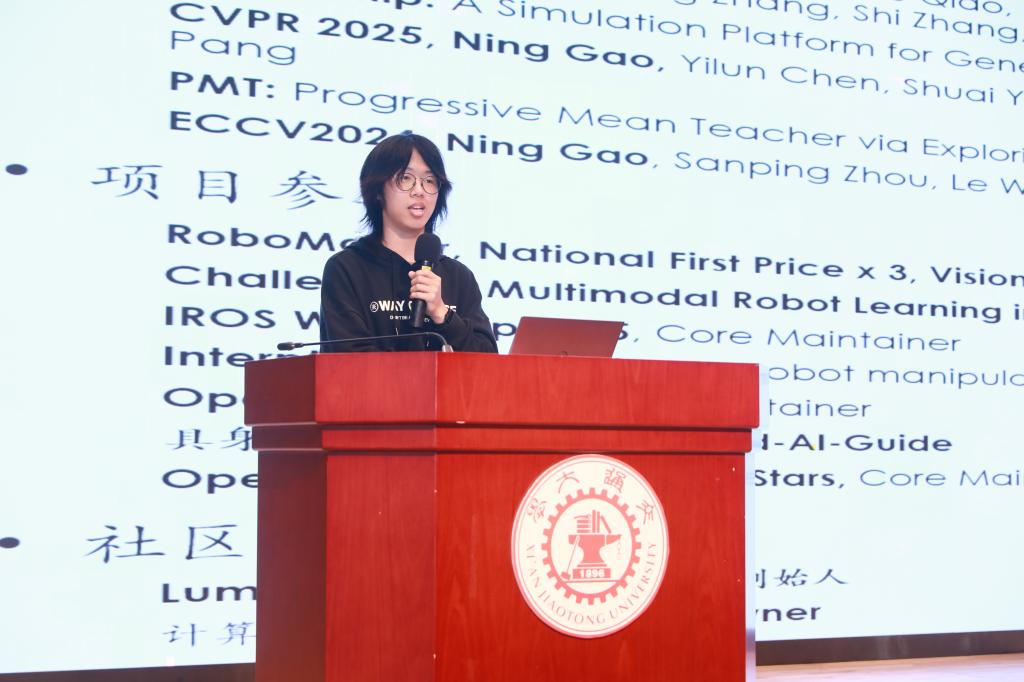 在学长经验分享环节,2023级博士研究生蒋卓谦回顾了自己在科研生涯中的心路历程,并坦言科研没有捷径,但学院提供的平台和导师的系统性指导让复杂问题变得可解。2022级本科生高宁代表分享学习方法,提出“前瞻预判、第一性原理、技术热情”三要素,并建议“每日复盘所学”,为新生提供可借鉴路径。