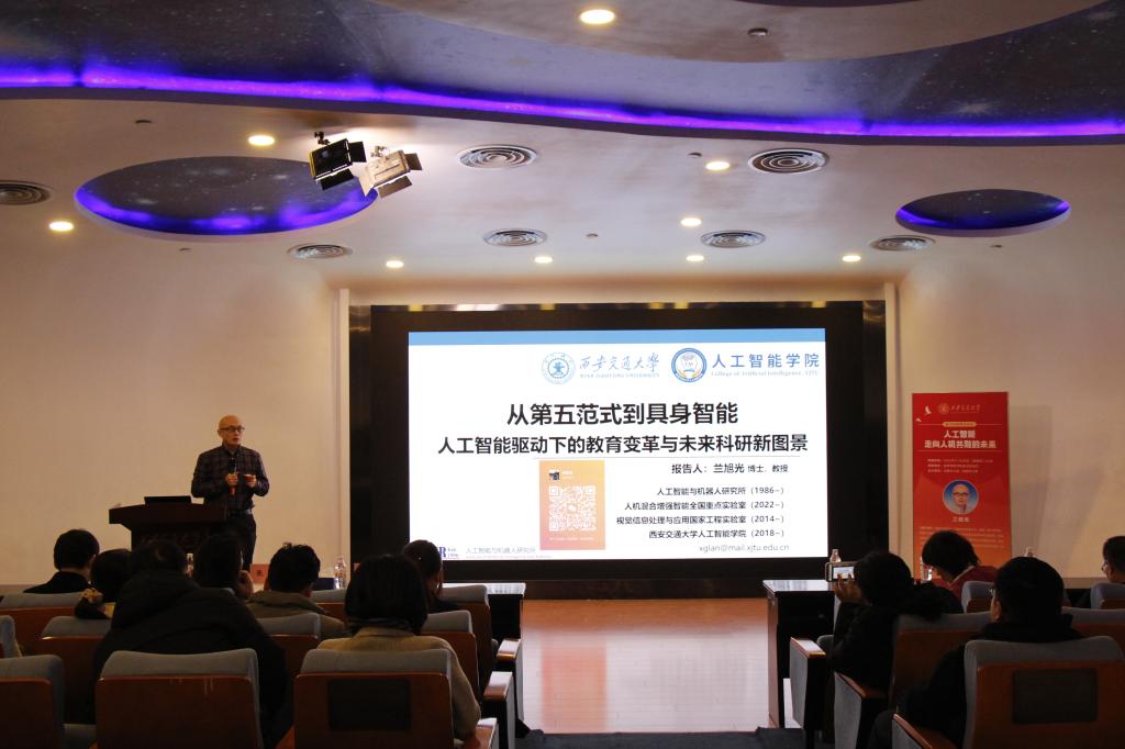 为深入推动人工智能技术与思政工作深度融合、赋能思政工作创新发展,人工智能学院特别举办专题报告活动。学院党委书记兰旭光教授以《人工智能:走向人机共融的未来》为题,结合学科前沿动态与思政工作实践,系统阐释人工智能发展趋势,为在场师生搭建起技术创新与思政建设的沟通桥梁。