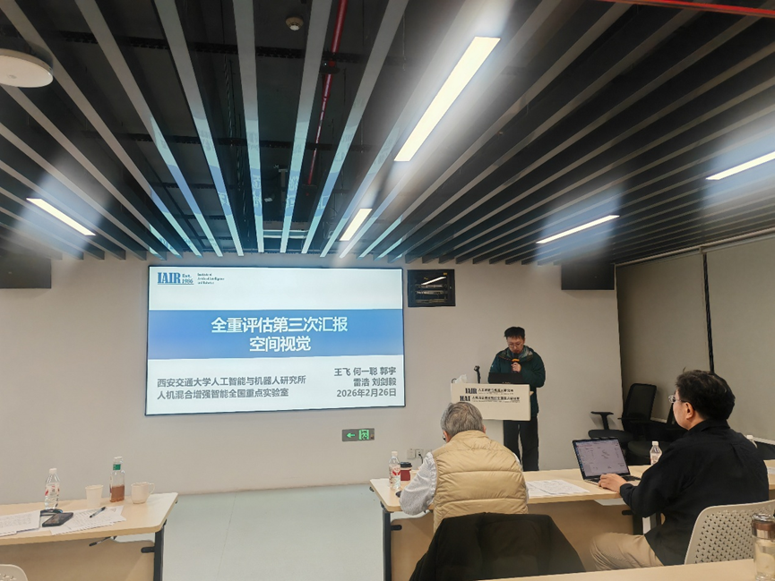 会议第二阶段召开全国重点实验室中期检查工作推进会。各研究方向负责人分别汇报了实验室建设以来的阶段性成果:杜少毅教授代表总体组介绍了实验室整体建设进展;张雪涛教授围绕“人在回路的混合增强智能”汇报了相关研究突破;周三平教授聚焦“脑认知启发的混合增强智能”展示了前沿探索成果;房建武副教授就“复杂环境可信感知与高度自动驾驶”介绍了关键技术攻关情况;何一聪教授围绕“空间视觉与人在回路交互智能”汇报了系统集成进展;夏天副教授代表“新型混合智能计算架构、芯片与平台”方向展示了硬件与平台建设成果。