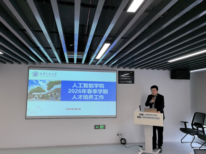 孙宏滨副院长就保密安全、纪律教育、科研合作成果使用规范及论文专利署名等方面作具体要求。兰旭光书记传达学校2026年度重点工作会议精神,并就队伍建设、青年教师发展、科研组织等工作做具体部署。魏平副院长围绕人工智能赋能教育改革、新型智慧教室与教学实验室建设、教材课程慕课一体化建设等三项人才培养重点工作进行安排。